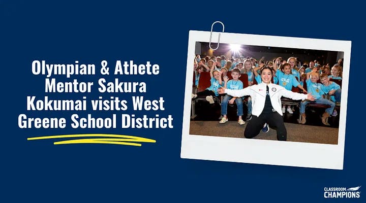 Steve Mesler and Eric GaydosAfter the event, Eric reflected and shared this with the Classroom Champions team:On behalf of the West Greene School District, I extend our heartfelt gratitude to Classroom Champions for the incredible opportunity to host all of you, including Sakura Kokumai, a true champion and an inspiration to our students.A staff member contacted me directly this afternoon to share that yesterday was the greatest event to ever echo through these hallways. Sakura’s visit was nothing short of transformative for our school community. Her dedication, perseverance, and passion for her sport left an indelible mark on our students, faculty, and staff alike. Through her engaging presentations, Sakura not only shared her journey as an athlete but also imparted invaluable life lessons on resilience, determination, and the importance of setting and achieving goals.The impact of Sakura’s visit extends far beyond the walls of our school. Her message of embracing challenges, staying focused, and never giving up resonated deeply with our students, motivating them to strive for excellence in all areas of their lives.We are immensely grateful to Classroom Champions for facilitating Sakura’s visit and for your unwavering commitment to empowering students through mentorship and positive role models.The experience has left a lasting impression on our school community, inspiring us to continue fostering a culture of excellence, resilience, and compassion. This was just good medicine for everyone involved, including myself.Bring an Athlete Mentor to your school!Our Mentorship+ program pairs you with a dedicated athlete role model that can teach SEL to your classroom, school, or district. Classroom Champions isn’t just a one-off assembly with an accomplished athlete. World-class athlete mentors become an integral part of your classroom and school culture with Mentorship+.